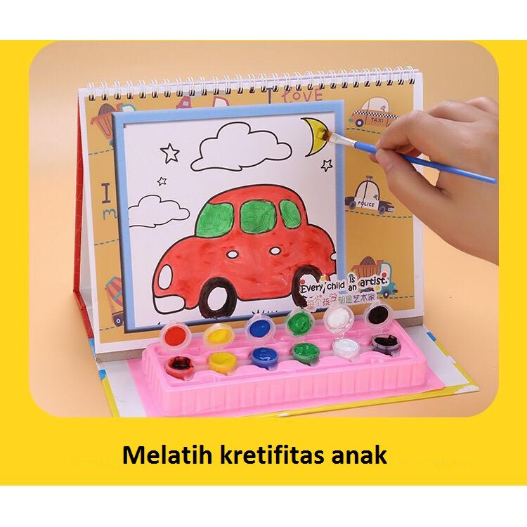 Cat air merupakan alat melukis yang menggunakan pigmen warna dan air sebagai pelarut bersifat transparan. Cara menggambar buku dengan mudah untuk anak.